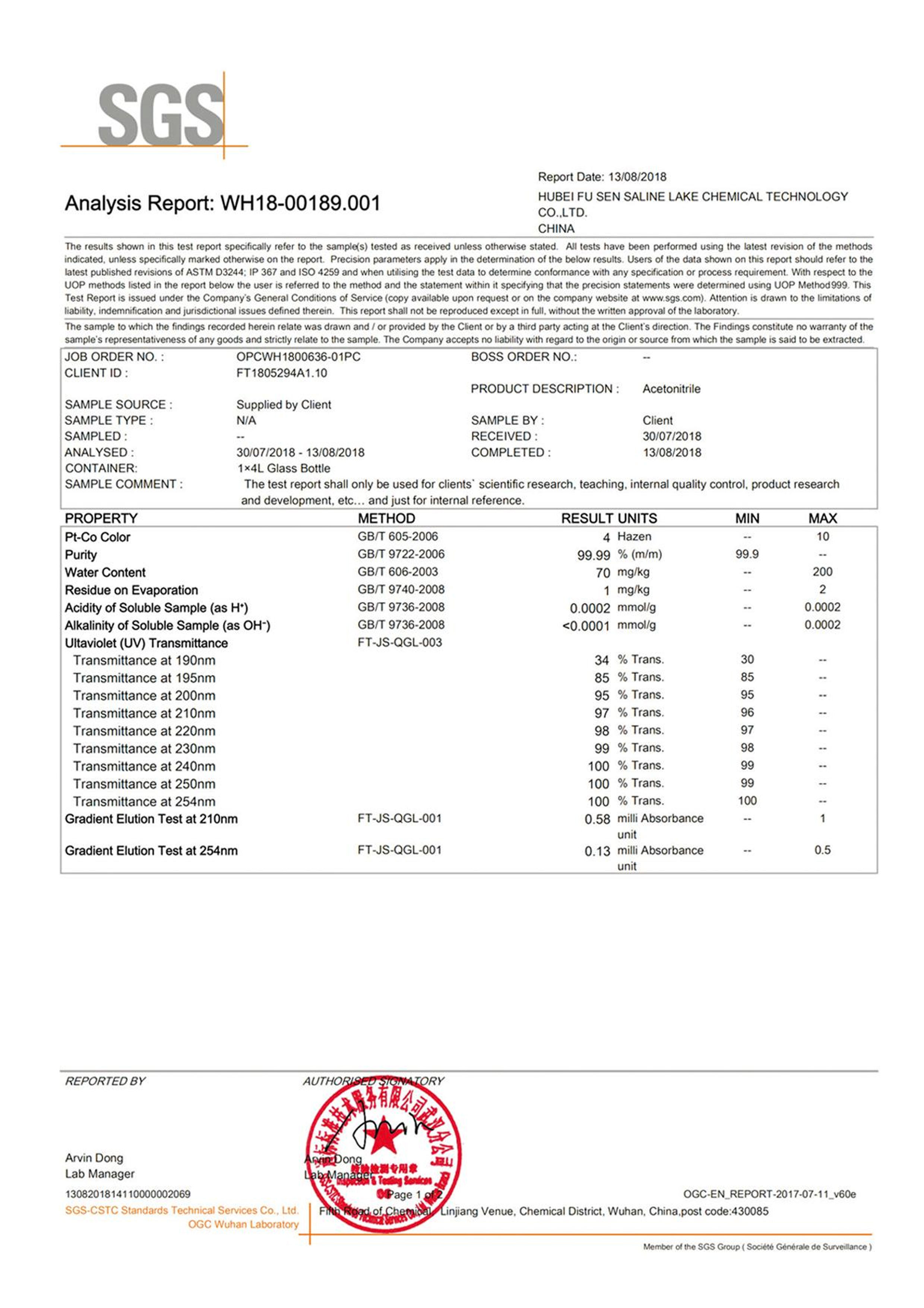 授權(quán)書 乙腈 甲醇